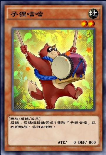 这张卡的②效果我这里更正一下:1回合1次,把这张卡1个XYZ素材取除才能发动。在自己场上把1只「影武者狸衍生物」(兽族·地·1星·攻?/守0)特殊召唤。这衍生物的攻击力变成和这衍生物的特殊召唤时场上存在的攻击力最高的怪兽相同攻击力。