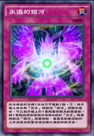 来自1005的银河光子新卡,本身带【银河】字段,可以被快斗的技能检索。本身还是挺强的,但是目前来说,能用这卡出的怪兽只有这次的【超银河眼光子龙】,期待后续银河和光子这两个系列继续加强吧。