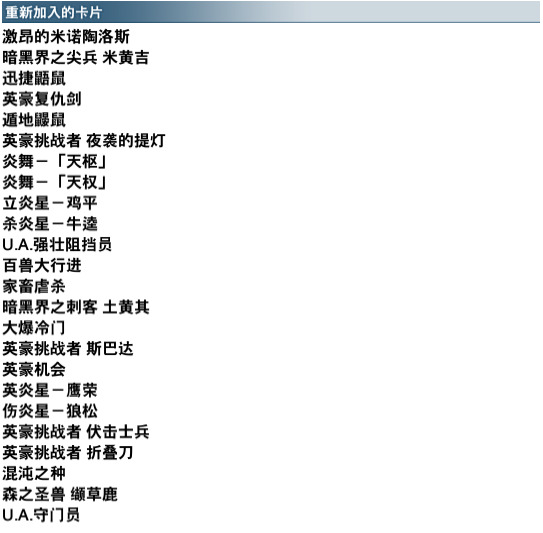加强系列:暗黑界、银河、银河眼、英豪冠军、炎星、UA、炎舞、我我我、ZW、落穴、编号