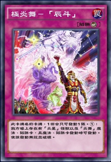 炎星本家反击康。发动条件苛刻,而且还只能康魔陷。带【炎舞】字段,可被【炎星】怪兽检索。