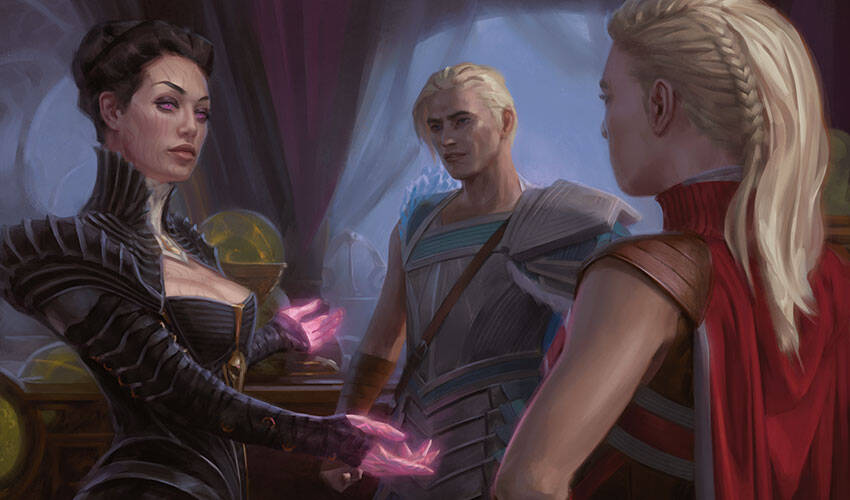不理会威尔的反驳,萝婉四处张望。在房间另一侧,位于一位勤奋苦读的粹丽学生身旁,飘浮着一个形似水母的生物-一个元素,由被魔法结附的水与穿透於其间的发光纯秘能量脉组构而成。萝婉咽下了对奥瓦宁所做之事感受到的部分反感。 那只不过是一道咒语,就跟其他任何咒语一样。