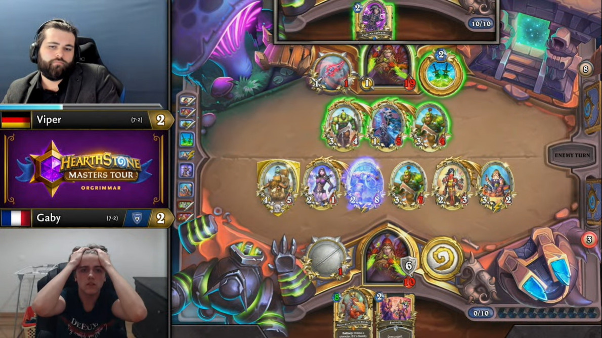 最后,这次比赛的八强阵容的豪华程度其实也足以堪称巡回赛之最(堪比去年的亚太站),这其中当然少不了法国和中国炉石的璀璨,但在其他层面上也别有一番意义。除了三位国手和法国的Gaby、xBlyzes以外,也算在法语区里的Floki也是巡回赛背靠背八强的新秀(所以算语言社区的话即使在八强双方也是五五开),然后就是Viper和Monsanto两位履历满满的特级大师了,其中后者可谓是整个美洲炉石的最后的尊严了……这八人中位居特级大师/战队联赛的职业选手多达一半,而且另一半人里天命和Melody也都曾是联赛选手,Gaby也基本坐稳下届GM,Floki也比较稳了。这么高的相关性在一定程度上也展现了这个版本的高竞技性(尽管也有法术法),这点很多职业选手也是认同的。