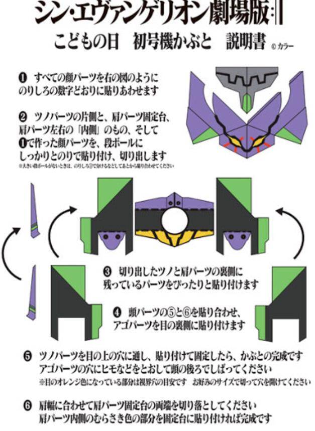 为了庆祝日本的儿童节( 5月5日),Khara社在官方推特上放上了《新世纪福音战士》初号机头的折纸模型,以PDF档案放在网路上供大家下载。