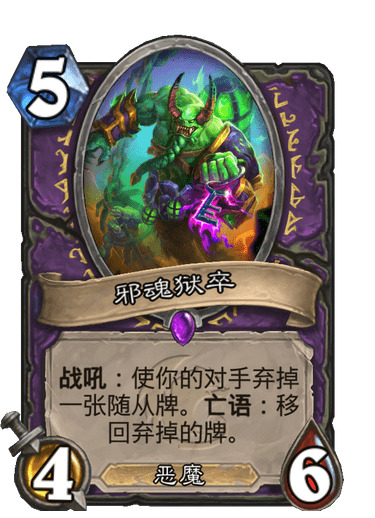 对手使用双倍战吼的邪魂狱卒,弃掉了我们两张随从