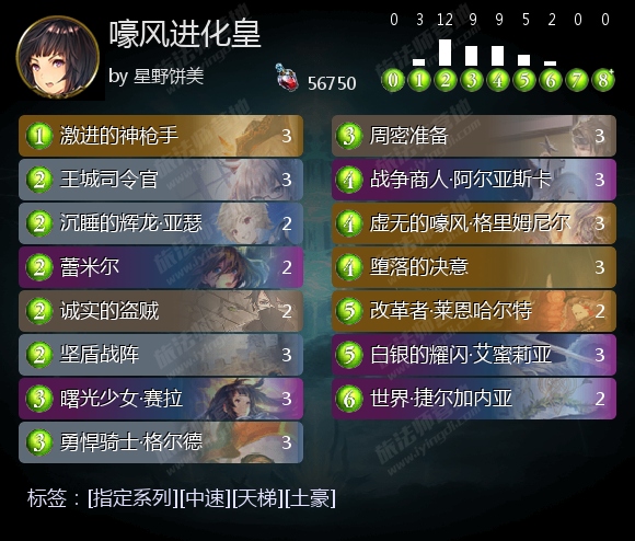 而在面对通过空场输出取胜的对手时,进化皇则可以利用蕾米尔、坚盾战阵和曙光少女·赛拉护脸,并通过赛拉、莱恩哈尔特和世界的回复抵消对手的抢血。如果对手是依靠单次高额伤害取胜的组合技,进化皇还有机会凭借沉睡的辉龙·亚瑟一卡制胜。