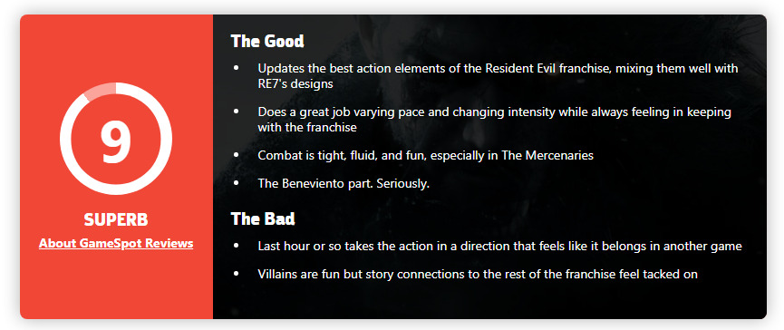 更新了《生化危机》系列中最好的动作元素,并将其与《生化危机7》的设计很好地融合在一起。