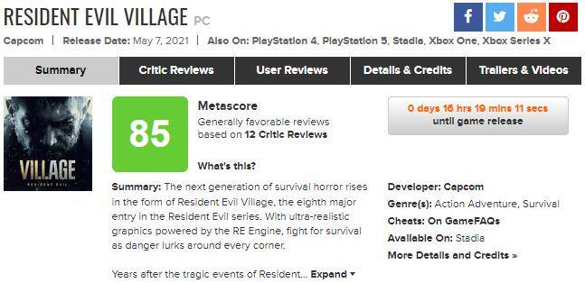 明天就要发售的《生化危机8》媒体评分解禁,PC85分,PS584分,XBX82分,已经有超过70家媒体给出了评分,其中IGN8分,Gamespot9分。