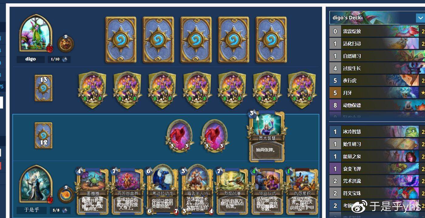 事实上,对手的德鲁伊还是很厉害的,在笔者5费的时候,对手已经优胜劣汰了,在六费的时候笔者面临一个选择。