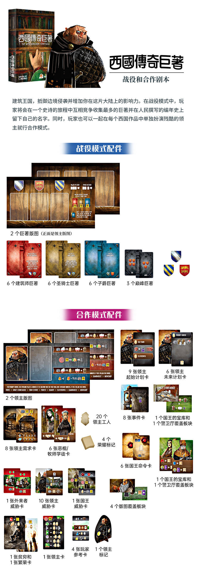 最后的项目来自摩点,西国系列的最终章,核心桌游玩家应该不用我多介绍了吧。《西国子爵》是西国系列三部曲继《西国建筑师》、《西国圣骑士》之后的第三部,也为西国系列画上了圆满的句号。《西国传奇巨著》是一个游戏扩展,它可以让玩家将《西国建筑师》、《西国圣骑士》和《西国子爵》结合到一起进行战役模式或者合作模式的游戏。