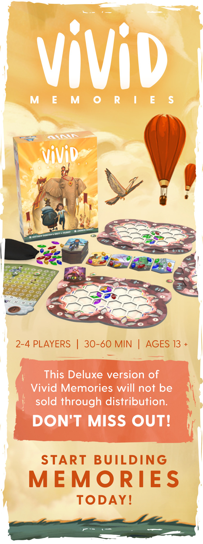 游戏非常漂亮但难度也不低,BGG上给出了3.2的难度。2-4名玩家,时间在45分钟,在游戏过程中,玩家轮流从各种美好版图卡牌上收集记忆碎片,然后将它们放置在自己的“大脑”版图上,以编织美好记忆。在每个回合结束时使用能力巧妙地建立联系,玩家将在完成“核心记忆”的过程中不同改变存储记忆碎片的方式而获得奖励。在整个旅程中,玩家将重要的时刻存储在他们的记忆库中-获得新的能力和新的得分机会-所有这些都在努力收集与自己渴望成为的那个人。