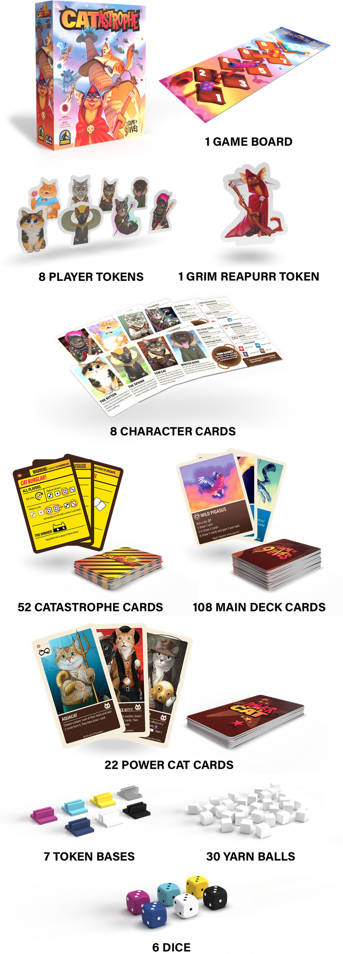 这是一款多人休闲卡牌游戏,因为是卡牌游戏所以我多关注了一下。这款游戏中玩家扮演有9条命的猫,尽量让自己活到最后。游戏过程中玩家从中央牌库抽牌,并根据不停变换的游戏规则来打出手中的牌,谁的命没了就要往下走一个格子。牌有攻击类,辅助类,破坏别人类等等。游戏的亮点是美术,爱猫之人可以看到很多拟人化的猫猫卡牌,第二是游戏的规则是动态变化的,会抽取不同的游戏模式,游戏将于明年4月发售,29美元起始档