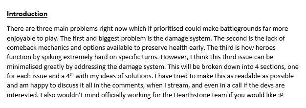 战棋的伤害结算问题倒也不是什么新鲜事了,玩家早就抱怨过设计师也改过,比如钓鱼海盗的重做;但SirSalty这次所指的问题还不光是亡语衍生物(或者说前人说得还不够严重),他觉得这个问题在结合了战棋的其他问题后还在变得更严重。简单来说,炉石的战棋比其他自走棋多了英雄/技能这层维度,它的弊端就是使一些有明显强势期的英雄在出山时过于强大,而他们的对手则被过分血入。因此他认为只有从根本上改掉战棋的伤害结算机制才有用,比如让所有人的掉血量更接近正态分布,再比如确保前中期输得再怎么悬殊也不该掉那么多血,等等。