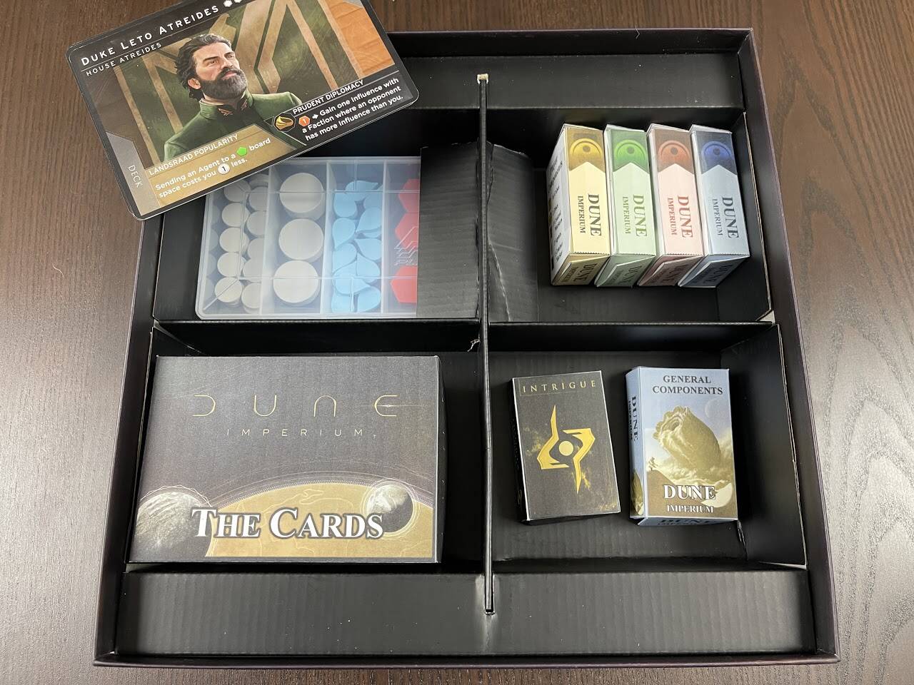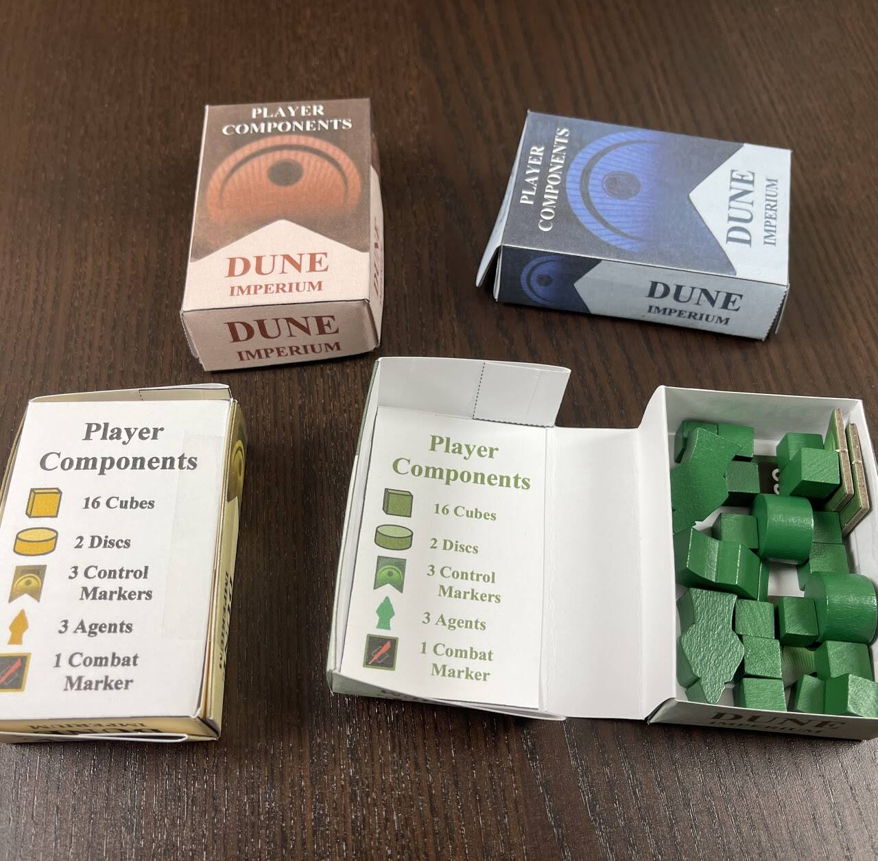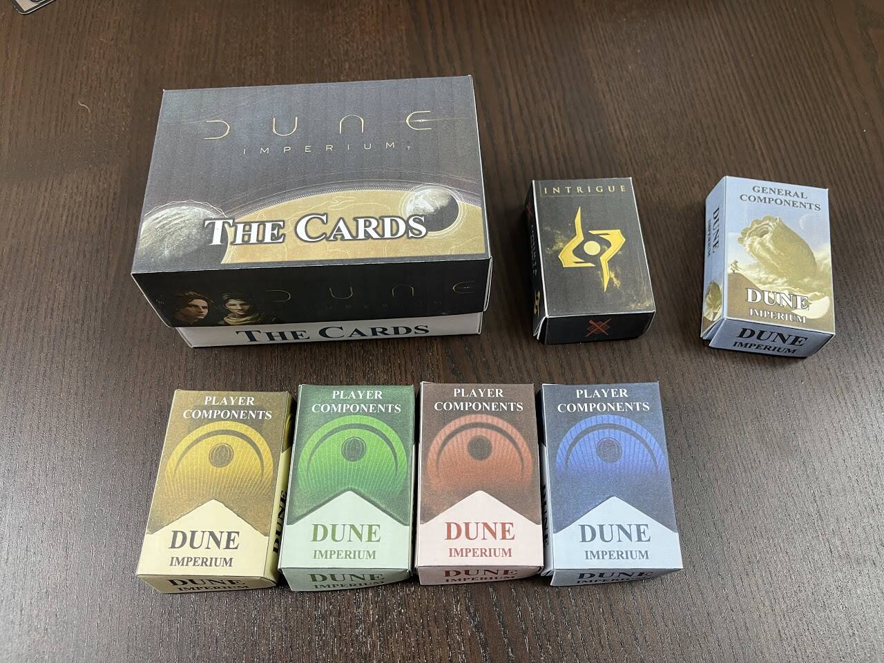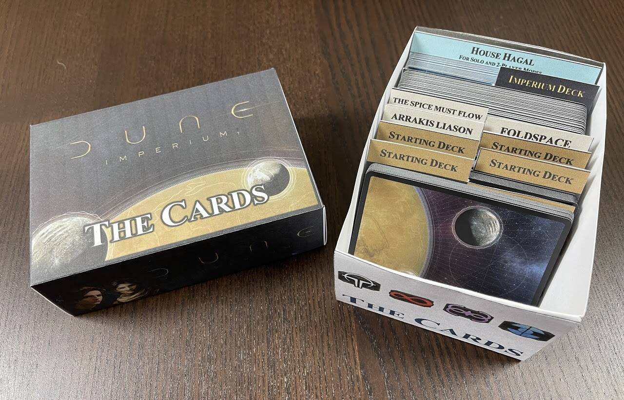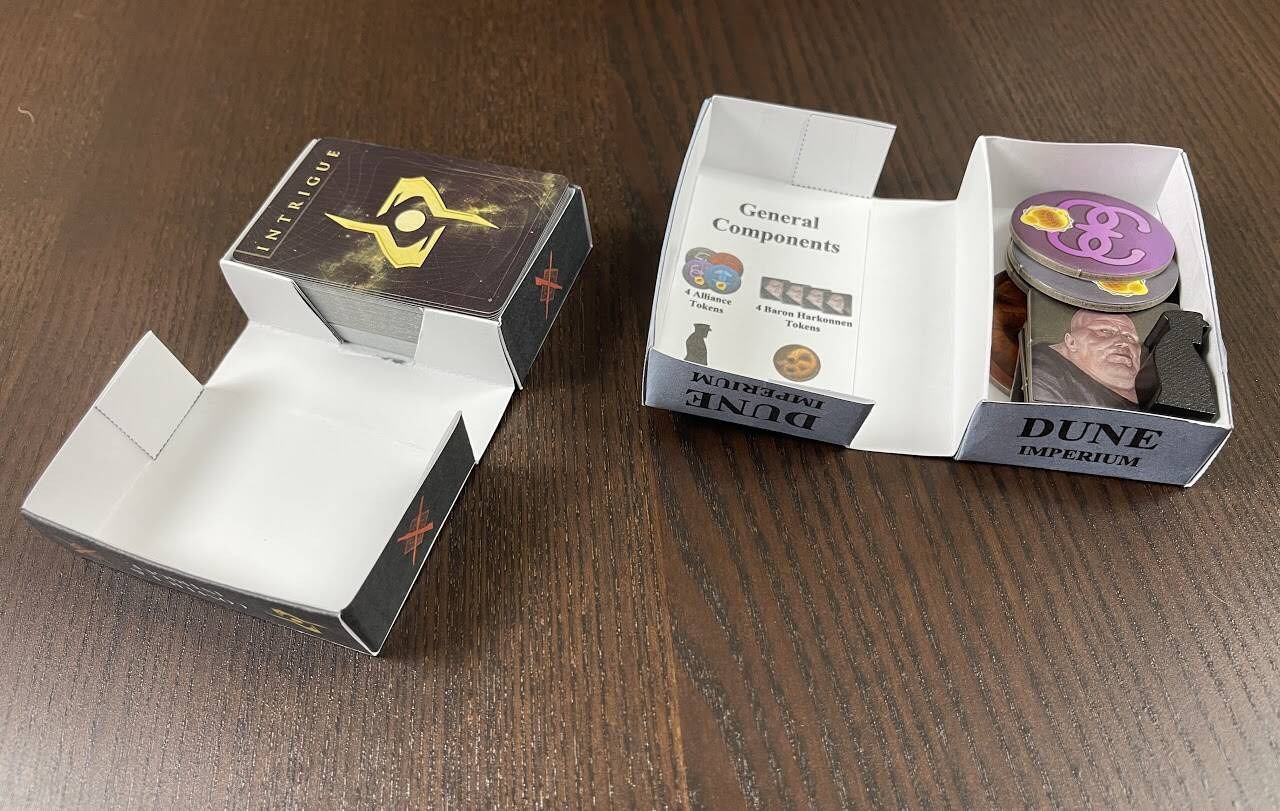 另一个下载模板来自TomTeaches,网站的收纳指导,原帖,这个网站提供很多模板,玩家自己用高克数的纸打印DIY制作各种收藏盒方便收纳。下面是沙丘的收纳效果