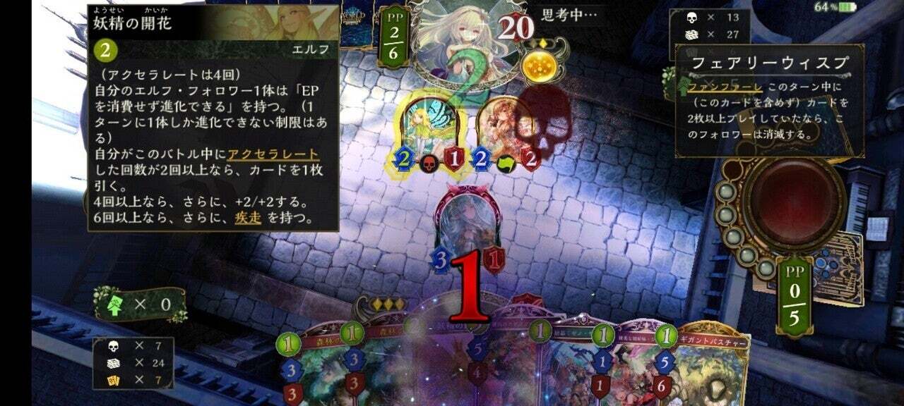 反过来说,如果手牌中的激奏牌(包括艾琳)加上之前已经使用过的激奏已经有4张了,并且手牌条件也允许,那么有可以追求开花致胜的情况。