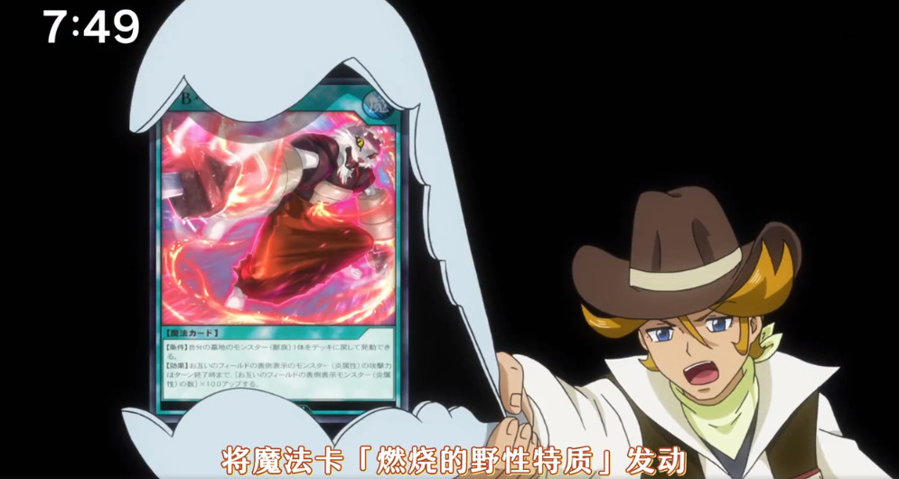 发动燃烧的野性特质,给全场炎属性怪兽加攻。