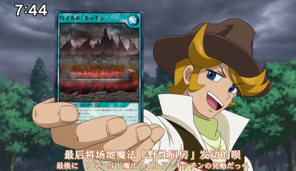 发动场地魔法野性厨房,自己场上有3个炎属性怪兽的时候才能发动,双方炎属性怪兽上升300攻。