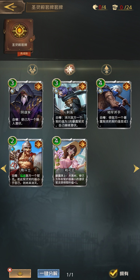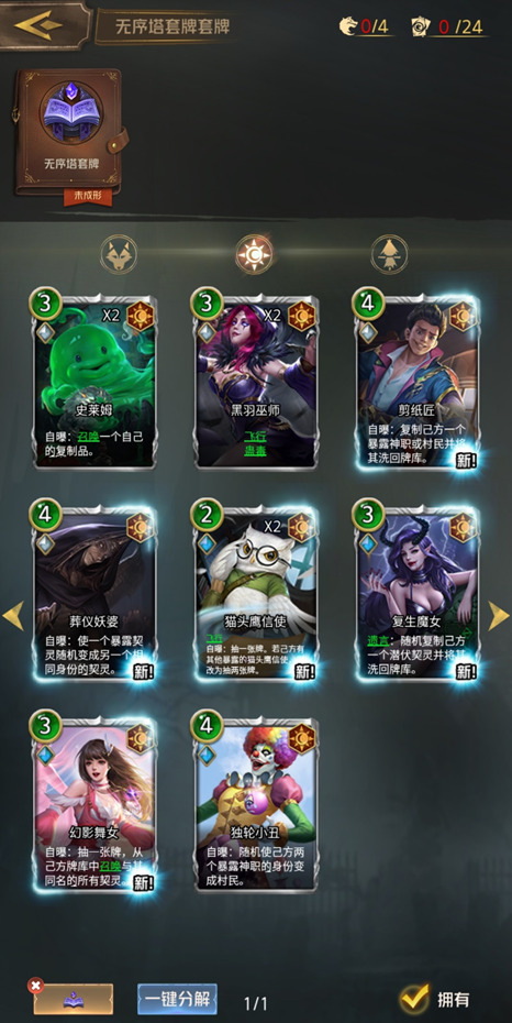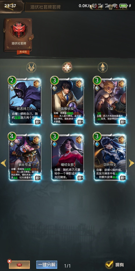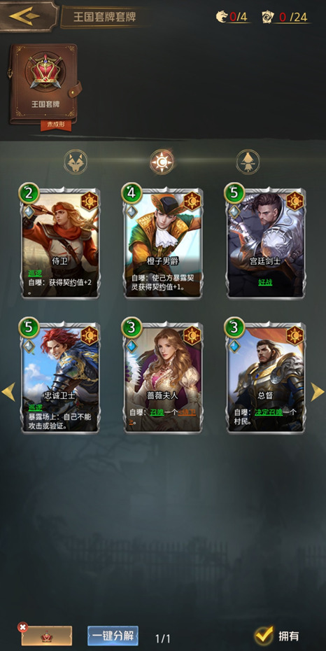 这些是前期解锁势力送的和开卡包得到的卡牌,可以看到,每个势力都有自身的特色,可以组出各种不同的玩法。