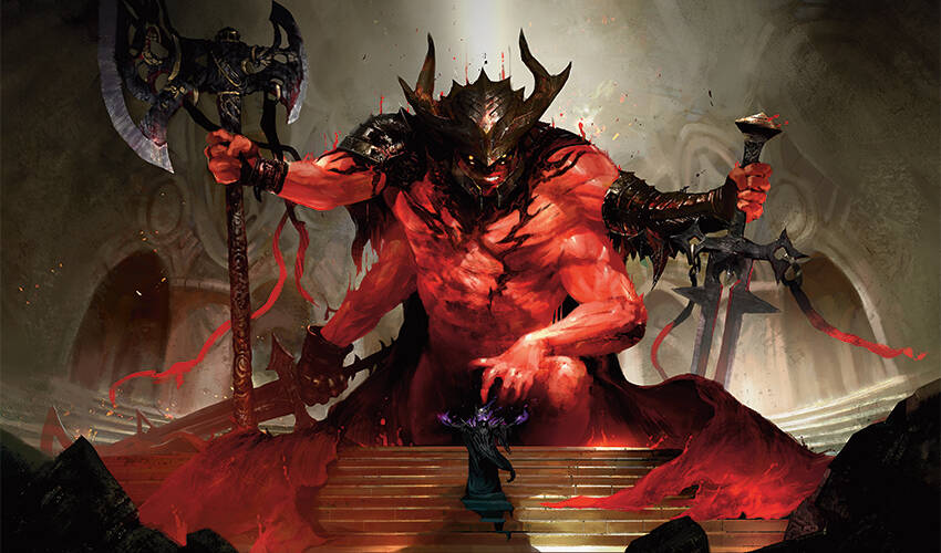 < figcaption >唤醒血腥圣者|从Art by:Kekai Kotaki作画「他们认为我永远无法成功-认为我不属于这里,不该跟他们那些高尚强大的圣法谕平起平坐。」埃陀斯咯咯笑着。他转身,狂野地比向他周四的雕像。「但他们现在在哪呢?会有谁在危急时刻帮助你们?」