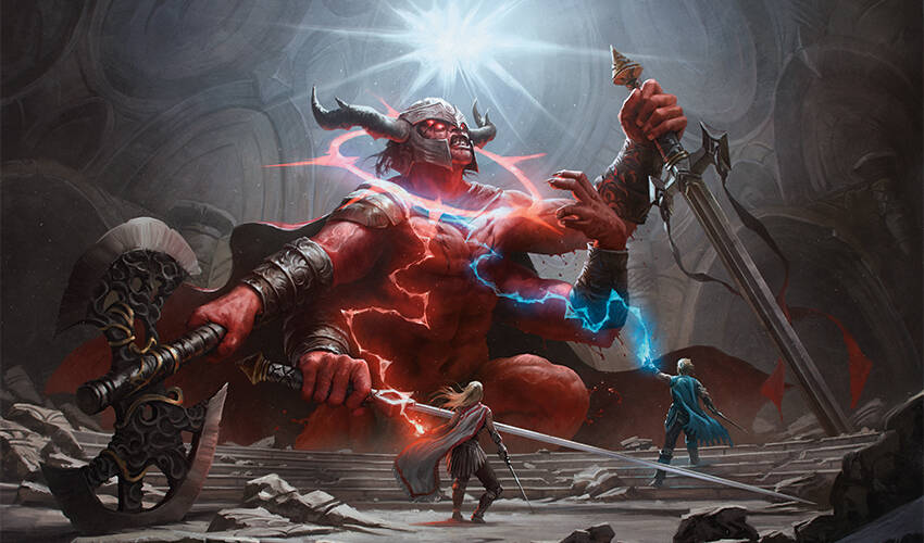 < figcaption >研学巅峰|由Bryan Sola作画「它或许很庞大,」威尔咬紧牙齿说道,双手因费力而颤抖。「但它是一只被召唤出来的生物。意思是利用这个咒语,我们就能够操控它!」