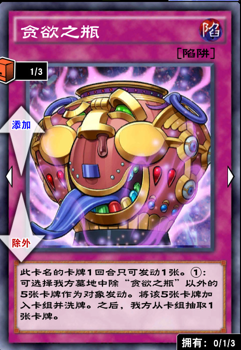 本家最强解场卡,还是个二速解场,不过经常会因为次元魔法、敌控、等卡导致自己吃不了对手怪兽卡,同时有忍法帖的检索以及场地的回收,所以我觉得投入2张足够用了。