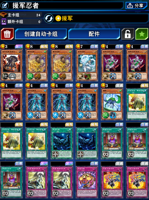 卡组投入到24卡原因也很简单,为了尽可能的防止自己的上级忍者上手导致自己卡手暴死。同时因为有着忍法帖以及黄金变换的检索+过牌,足以支持卡组选择24卡的大卡组构筑。