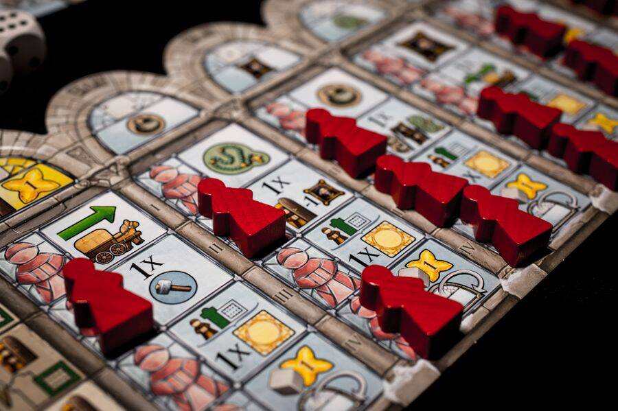 所有选择的骰子都是为了接下来的 行动阶段 做准备。玩家们轮流进行,选择一个至少包含1颗自己个人骰子或公共骰子区域,然后拿最多3颗骰子执行行动,每个骰子对应一次行动机会。当你用完所有这个区域你能用的骰子之后,到下个玩家,直到所有骰子被用完。