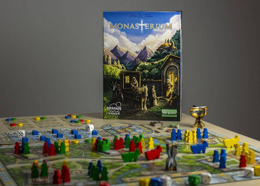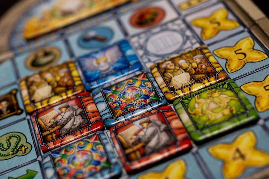 这就是德式桌游《修道院》(Monasterium)要讲述的故事了,各位玩家分别扮演一座教堂学院的院长,要设法在修道院中安置那些托付给你的见习修士,从而建立起卓越的声望。俗话说“寸有所长、尺有所短”,各位院长要根据这些见习修士的才能发挥他们的特长,将其分配到修道院建筑、小圣堂或回廊等处。并从资深修士那里获得卓著的名望。除此之外,修道院里还有很多特殊任务可以完成,又或者多多装饰教堂的彩绘玻璃花窗,也能让学院名声远播(这大概就是创造当年的网红打卡地了)。经过三年的时间,看看到底能够为自己的学院获得多少名誉,只有最名声显赫的才能成为赢家。