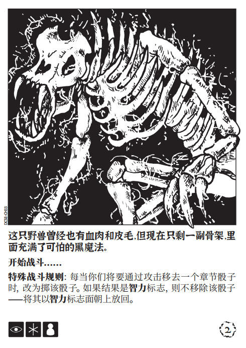 在这两个章节里,翻开章节牌的角色不能掷出相应的智力和力量标志。可以看成这个角色的骰子上所有相应标志都消失了。如果掷出了相应标志,就当做空白。如果掷出双倍效果,盾牌的标志依然有效,只是单纯进行抵挡。
