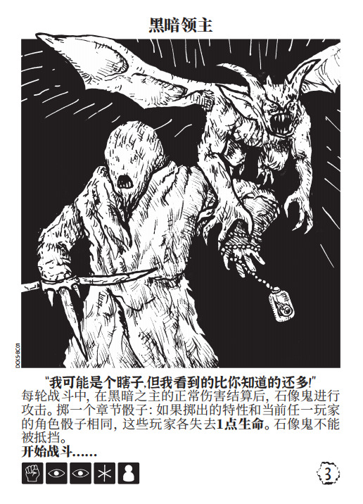 这个生物只攻击翻开此章节牌的玩家,即使其他玩家正在攻击它(其他玩家当然会抓紧攻击它,除非有人想休息)。