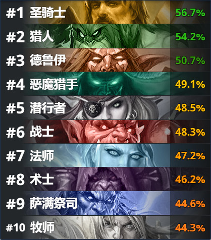 Iksar:牧师和盗贼一般都对操作要求更高,所以他们自然也就会在高分段表现更好。但这两个职业目前在任何分段都没有比其他职业强太多,包括传说高分段也是。而在低分段,或者说对后90%的玩家来说,牧师都是相对较弱的。
