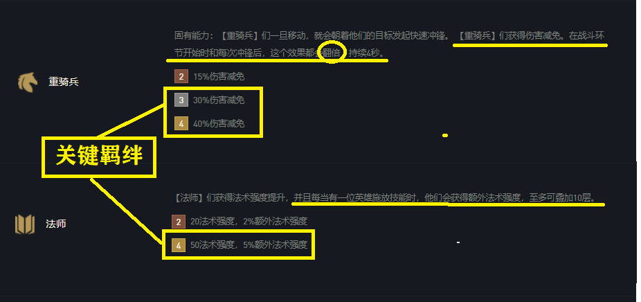 阵容运营关键羁绊:3/4重骑兵+4法师。阵容主C猪妹或人马,副C维克托、火男。