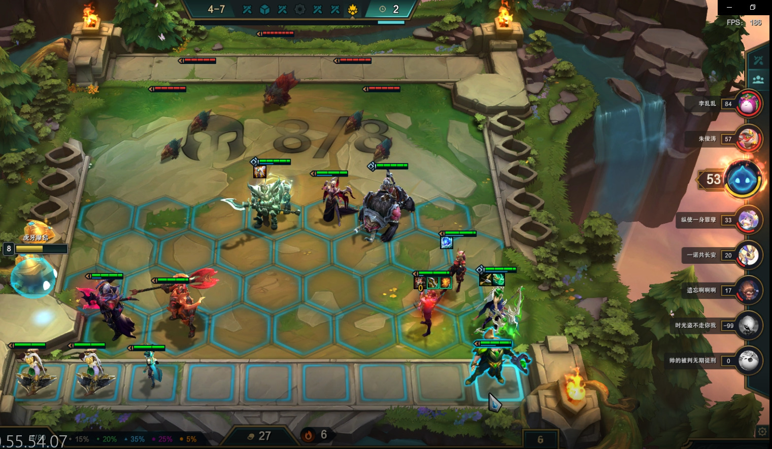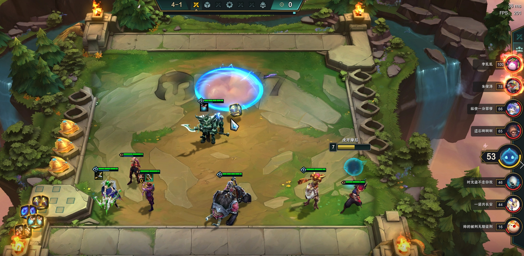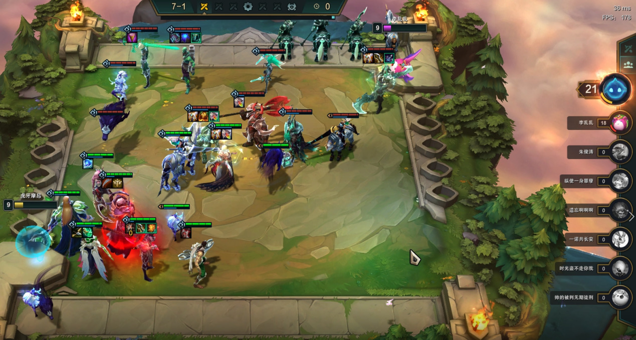 在4-5或5-1的时候看自己经济情况与对局节奏选择啦8人口,配齐4游侠。摩昂是在4-5啦的8人口,但搜卡没找到1只月男,更离谱的事,月男这种没人要的棋子,全场就我这一只,摩昂竟然在5-5才搜到2星,但之后开始稳定锁血,连胜。