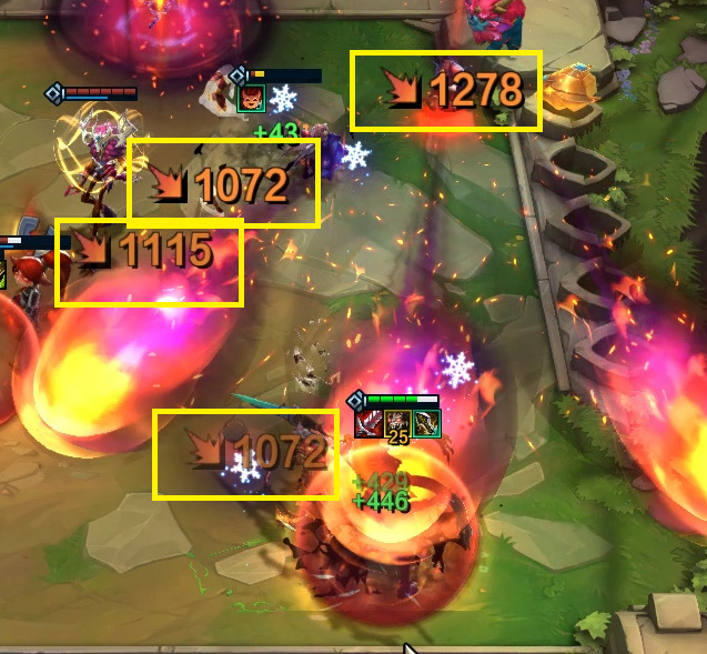 阵容关键就在于4游侠羁绊为月男提供超高攻速,再搭配黑暗无尽与泰坦快速叠加到25层,月男一个技能下去4个1000+的伤害的恐怖伤害,伤害场均1W+,如果遇到小恶魔2W+。