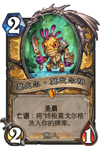 4、莫戈尔:我个人的理解是圣契骑最忌讳的就是前期没随从出,只能摇报告兵要是这种情况再4费5费的时候不能准时出奥尔多真理追求者,那么这把大概率就输了。莫戈尔可以作为前期的占场随从,而且终极莫戈尔是8费的,能够直接被泰兰·佛丁直接稳定过到。在许多对局中终极莫戈尔的作用是大于女伯爵的,而且是抢回合数的对局中有着至关重要的作用。