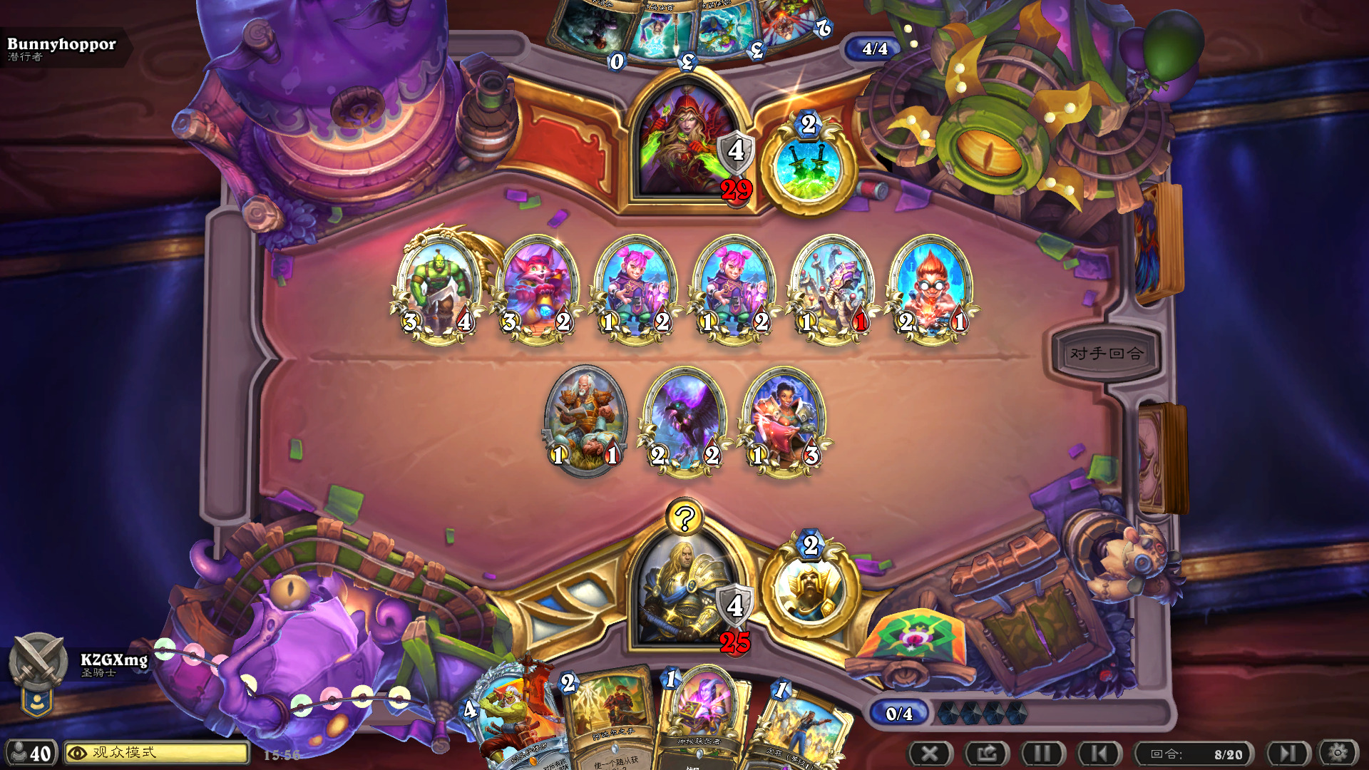 防战:小优,这个对局赢的关键是通过女伯爵来打资源,所以2费的莫戈尔我并不会留,万一泰兰·佛丁鬼抽了就会很尴尬,这个对局需要的是持续的给对手压力,切忌千万不要一波投入过多的压力,就要给对手有解也不舒服不也不舒服的感觉,必要时候甚至可以把战士的血骨傀儡一层层的剥皮解掉,因为这是战士唯一的有效进攻手段,我之前有一局就是对手前期很顺,在他下血骨傀儡的回合我在后面几个回合都抢不死他,然后选择把他的血骨傀儡解干净,靠无限贴智慧圣契赢的。我觉得这个对局只要掌握好方法,不被发牌员针对,一般都能赢下来。