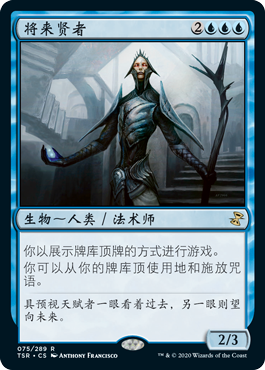 冷知识,【聚流】这个系列有【聚流】这张单卡,但是【时空混沌】这个系列是没有【时空混沌】的,【预知将来】这个系列也没有【预知将来】(之前的【visions】【预言】【启示录】也不在原系列,后来的【古文明之战】【围攻秘罗地】也不在)。与之相应的贤者牌反而被安排在了这个系列。因为【预知将来】限制赛很慢,所以【将来贤者】还挺强的。可重印了真的【预知将来】的【摩登新篇】却是个飞快的系列,导致【预知将来】在那个系列动辄传一圈。同样追求节奏至上的摩登构筑也没有【预知将来】发挥的空间,遑论吃去除的【将来贤者】。