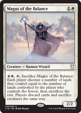 第四张是来自【C18】的【均势贤者】,其原型【均势】依旧是薪传赛制大禁牌,甚至在指挥官一样是禁牌。不同于前面三个薪传禁牌的是,这张牌是fair套牌而非组合技套牌喜欢的,即使在特选,也是几乎所有白色fair必带。而威世智担心【均势贤者】像【均势】一样损害大家玩指挥官的体验,给了这个牌足足5个费的起动费用,让这个牌彻底不能用了。