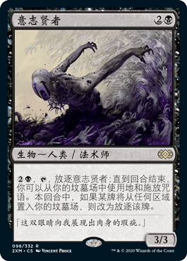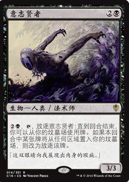 第二张是来自【C16】的【意志贤者】,其原型【约格莫夫的意志】一样是薪传大禁牌,甚至在特选赛制更泛用。由于【约格莫夫的意志】本身以及【冥界裂隙】和【过往成焰】在指挥官赛制都合法,所以你会优先用这三个,还不够才会考虑【意志贤者】。