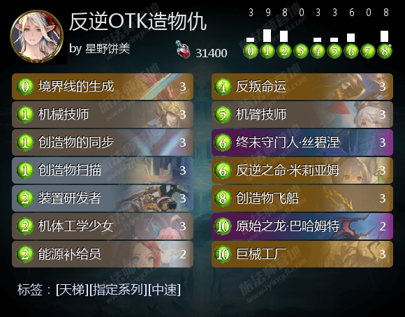 总之,这套造物仇十分全面,基本没有短板,而且稳定性也十分出色,适合环境复杂的天梯。在通过练习熟练掌握后,这套造价亲民的套牌便能用于高效上分。