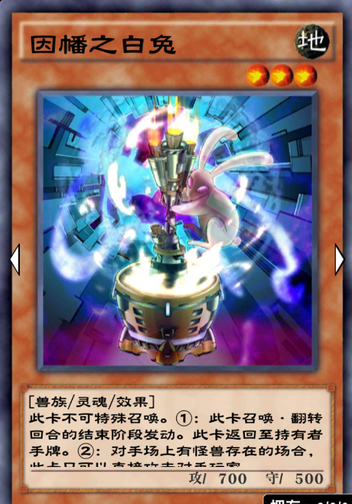 俗称小白兔,直接攻击,打完就跑,占通召点的打手。要注意它只能直接攻击,并不能攻击怪兽,不过对于我们这个卡组并不能算负面效果。