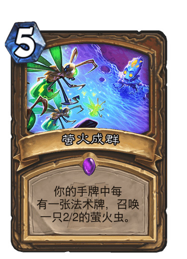 1.激活:激活我认为必然满编,激活可以提前启动萤火虫,提前启动一回合意义很大,典型例子,提前一回合萤火虫群,配合聒噪怪多一个,6费可以日蚀树木生长,2费可以激活真菌宝藏,虽然削弱了但还是很好用,先后手要看情况,基本都是不留,除非手牌刚好配合起来。