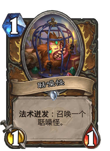 4.聒噪怪:这是这套牌的灵魂卡,这套牌两个重要核心,萤火成群和聒噪怪,聒噪怪早期配合花呗铺出来的场面,对面很难处理,牧师罪罚5费才可以打2,术士3费才可以打2,1费消灭自己随从那个卡很少人带,骑士,盗贼基本就更难处理了,法师也是3费燃烧,这个卡又叫香菜,因为头顶有个大白菜一样的东西,哈哈,先手后手都可以考虑留,有萤火成群对阵慢速卡组不建议留,需要过牌运营,除非你就是博天胡,举个例子,你对阵术士,用聒噪怪如果不能铺一波劝退,被别人狂乱了,打2全解了,你就输了,需要足够的手牌,理想打法是,萤火成群先发,解不掉对面没了,解掉了聒噪怪再来一波,具体的对阵各职业再说。