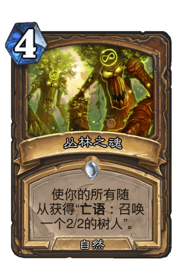 14.丛林之魂:必然满编,对阵所有职业,贴上亡语保证你能战场,有一些对局一张丛林不够,故而满编,先手后手都不要去留,你需要的时候他能来最好,你不需要,你没场面他就是一张废卡,满编是为了好上手,有时候我们很需要贴亡语赖场的。