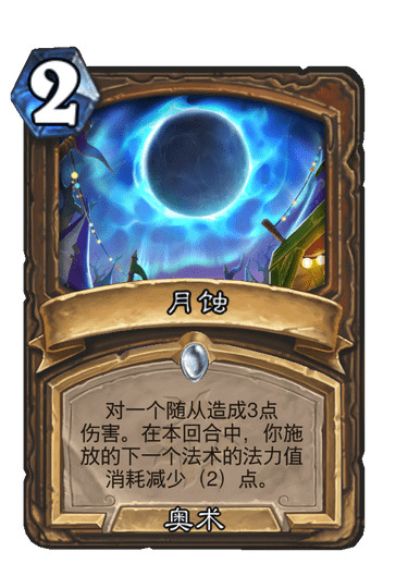 9.月蚀:之前选择过不带,或者带一张,但是目前必然要满编,超生德如果没有天胡,必然4-5费启动,这个版本前期对于3费场面的争夺,给予你的压力很大,很多时候战士裸拍223,骑士给11贴个buff,猎人223招土狼那张卡,你解不掉,基本就输了,骑士33不可怕,可怕的是可能后续还有buff,猎人的223出满场土狼,我们会来不及,战士223,在下个螃蟹骑士,334的身材,我们承受不住的,起手看对阵职业,对阵慢速不留,打猎人等快攻卡组不留,刀贼不留,他没什么怪,小技巧,日蚀月蚀打6,减4费,有一费法术先打再打月蚀,月蚀一定要减2费,对阵快攻建议留一张,用来处理场面缓解压力,先手手牌特别差,不留,找过牌核心。