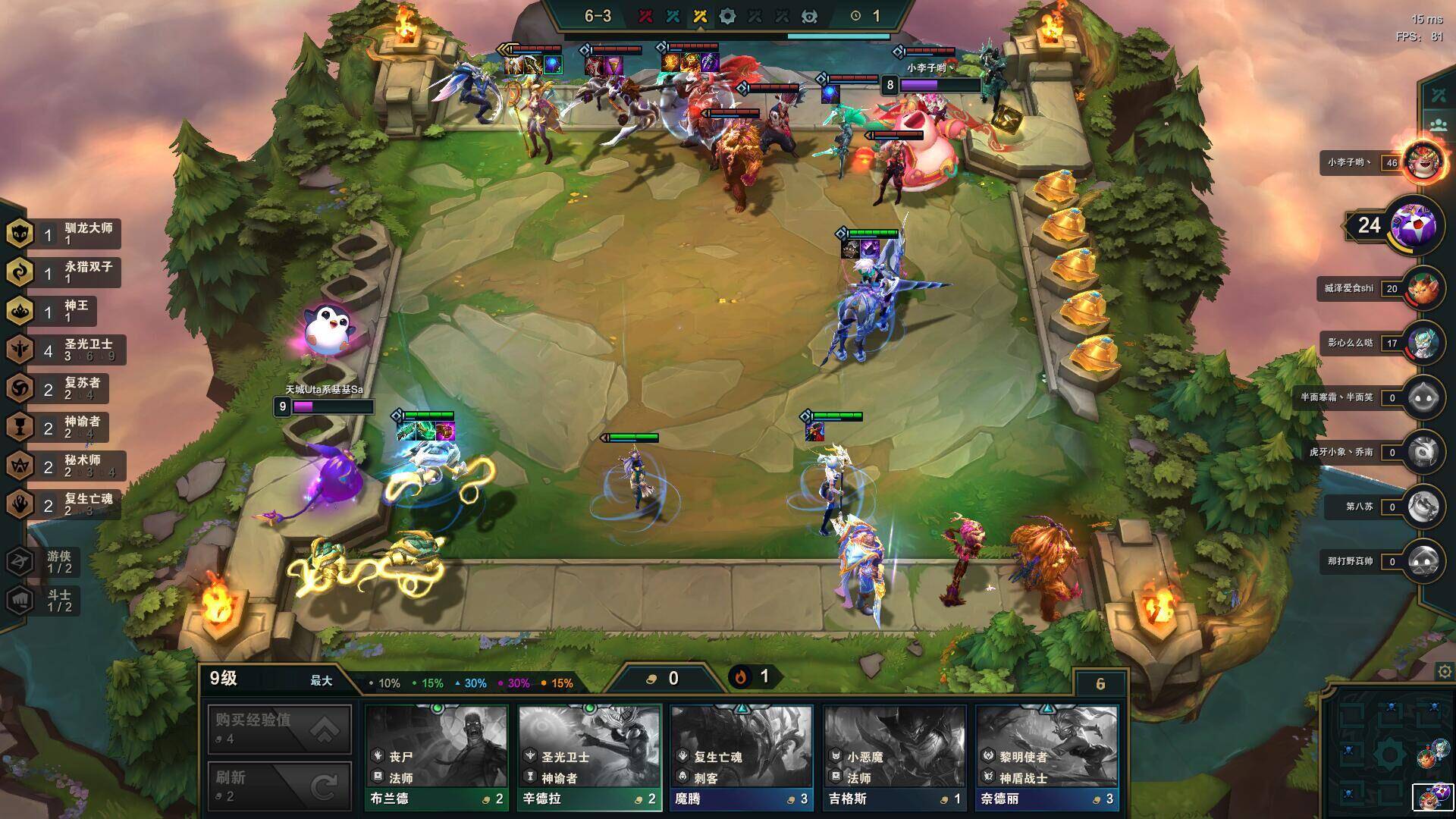 阵容原理:6圣光战士先顶一会伤害,死亡后会把buff集中给维克兹和天使,神佑羁绊偶尔能保证维克兹不被断大。注意大眼对位敌方C位即可快速清场。