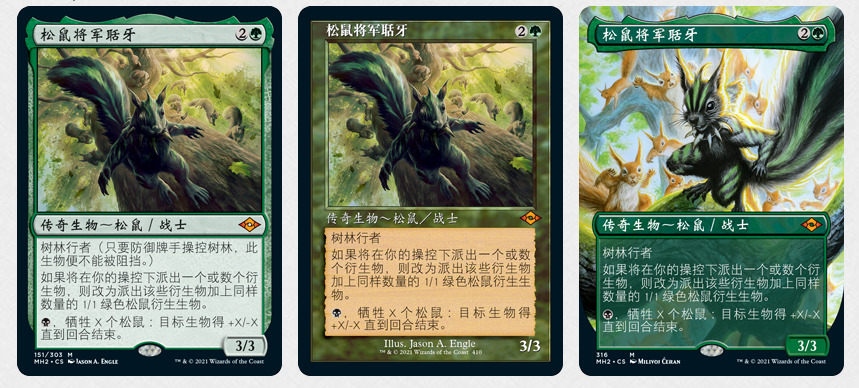 我曾谈论过其他人和我是怎么努力让松鼠回到黑框牌的,而 Aaron 更是让松鼠成为了在黑框系列里面了轮抽原型。 是的,摩登新篇2里有的不只是松鼠,它还有着可以轮抽的松鼠部族,而我今天的五张预览牌都属于这个主题。