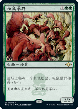 每位玩家每操控一个树林,就将一个松鼠衍生物放置进场。 将这些衍生物视为1/1 的绿色生物。