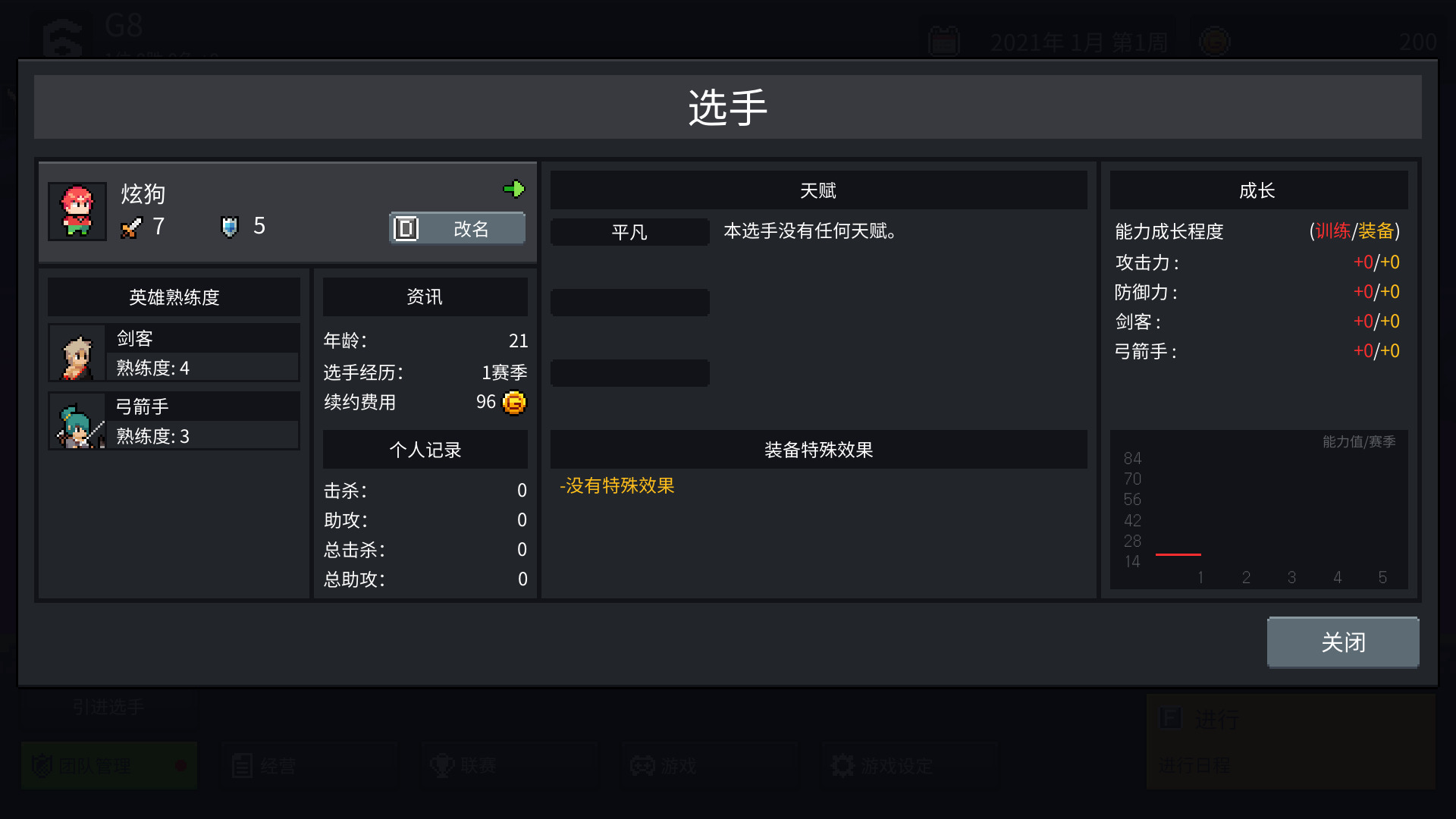 比如这个叫炫狗的选手,他目前的身体状况是健康,可以正常比赛,擅长的是剑客和弓箭手,没有什么特殊天赋,续约价格也比较便宜,一晚上96块钱。但随着比赛的进行,如果大放异彩了就会涨价,比如拿了S6第一个王者,那这个含金量有多足。