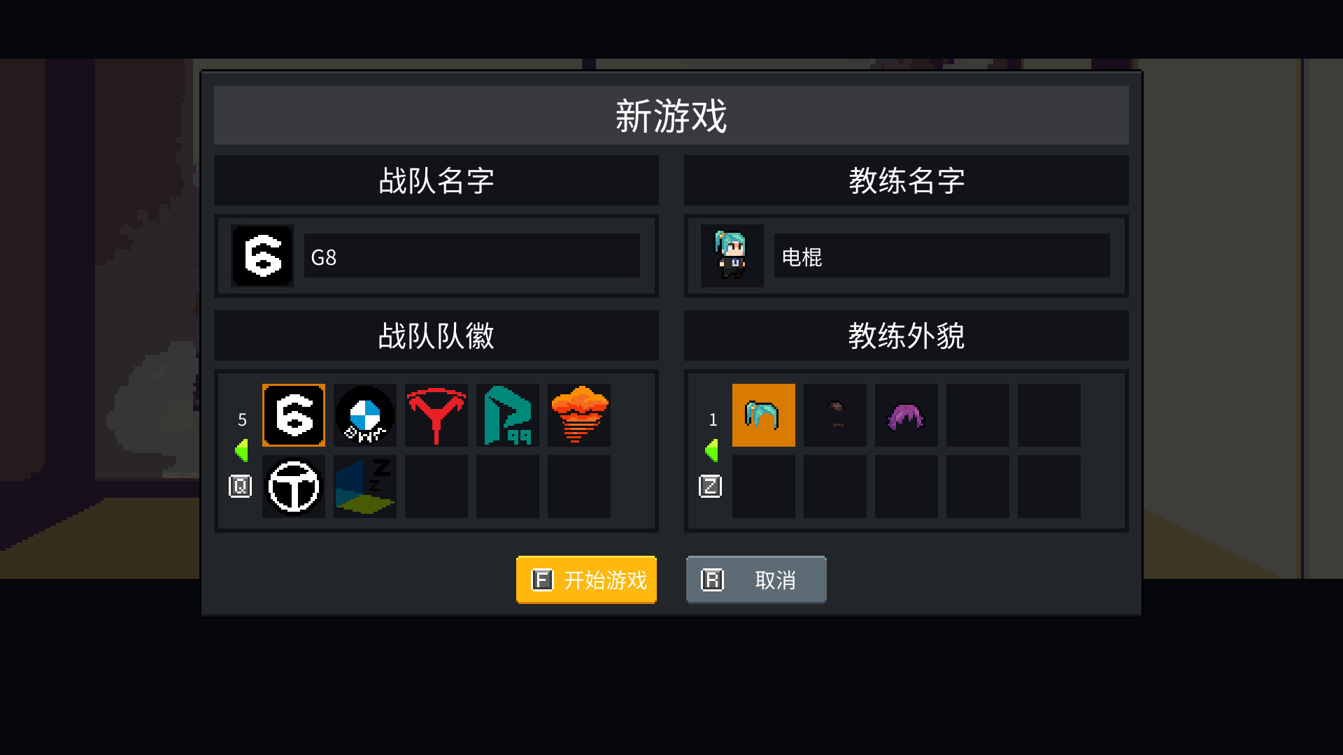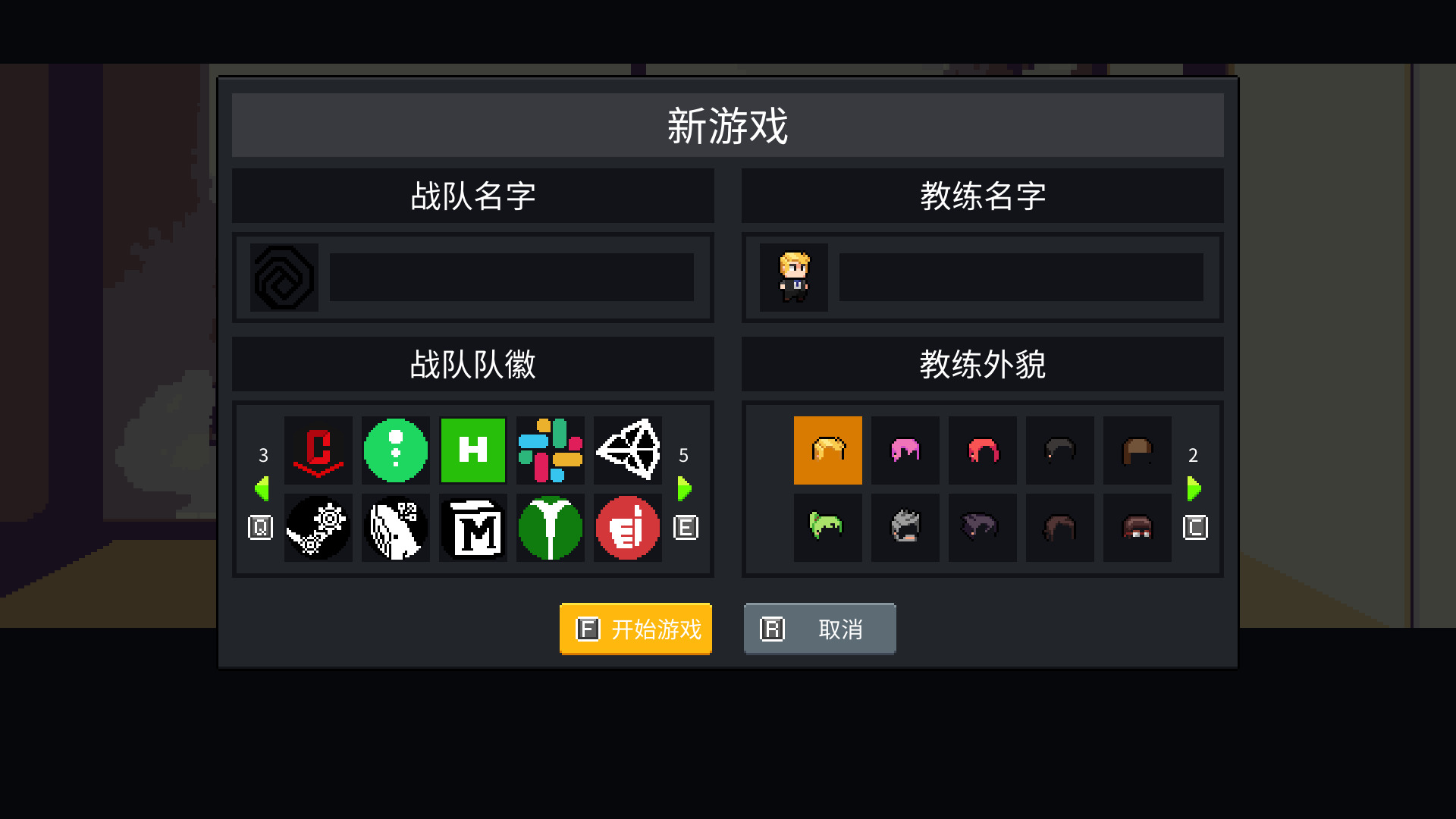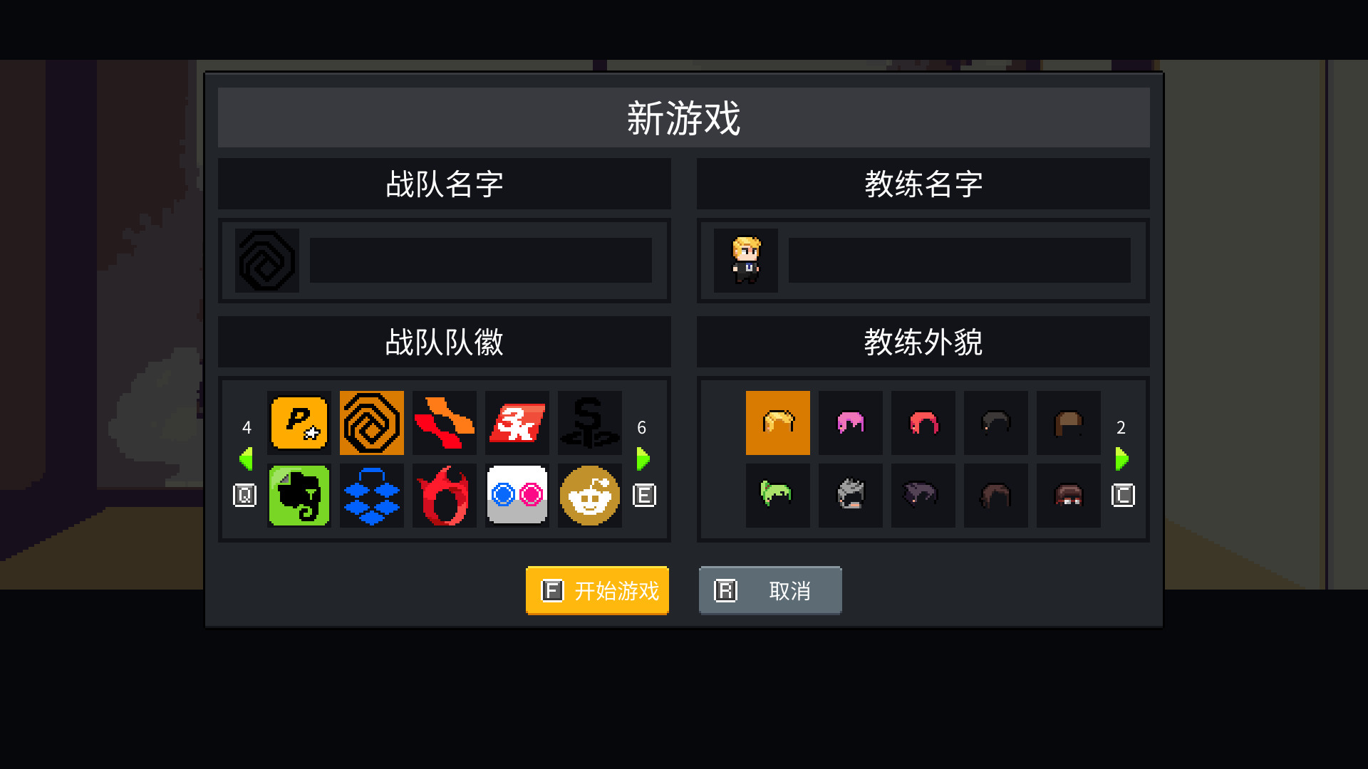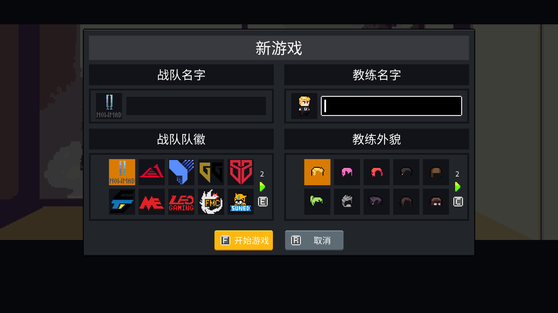 此时游戏进入了自定义界面,你需要选择你的主角名称和战队名称。