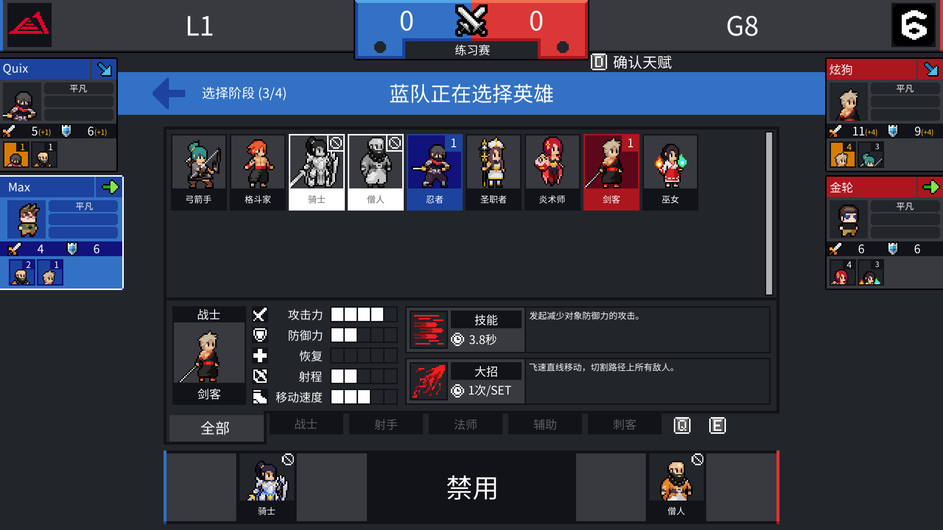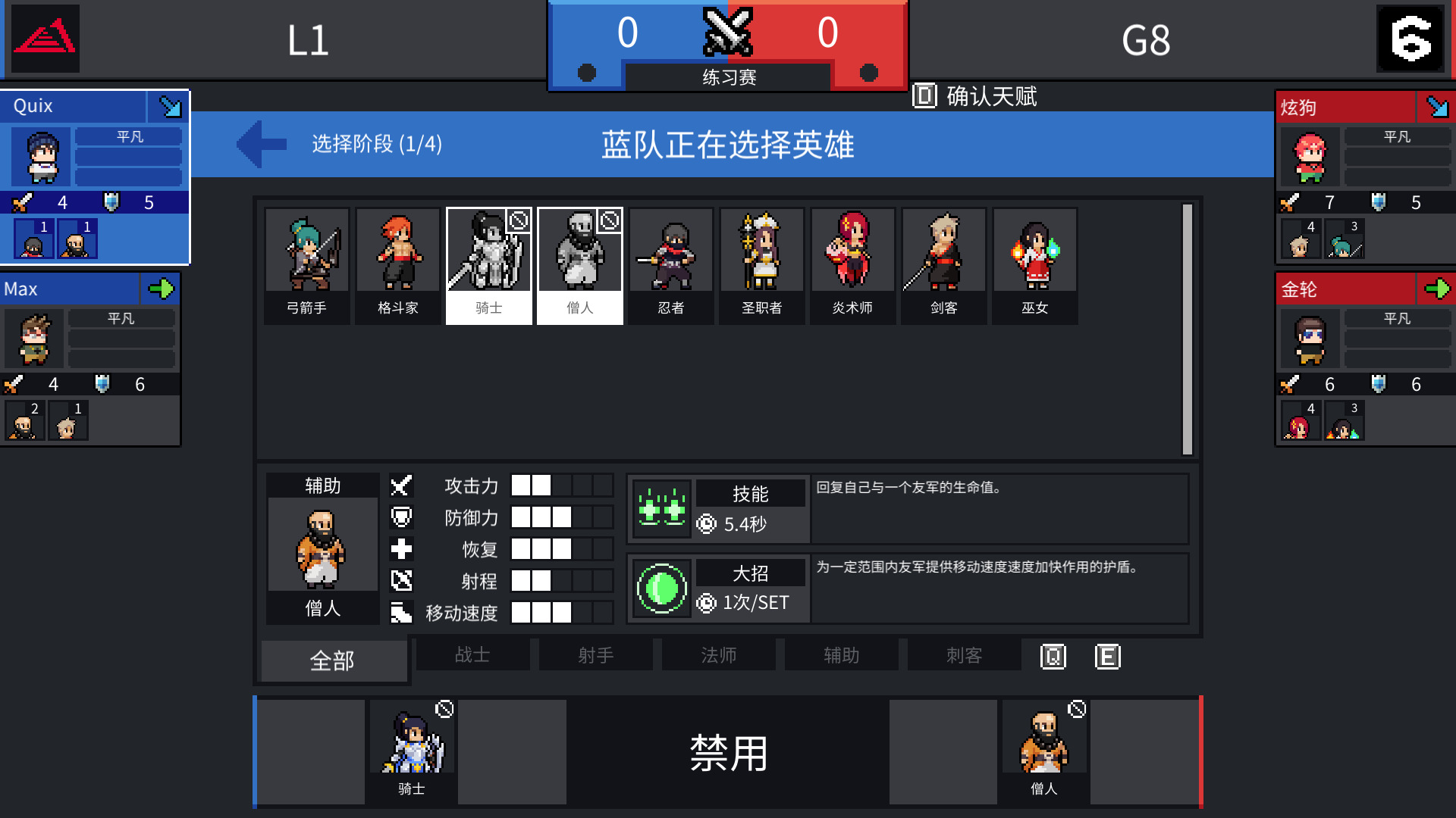 接下里是BP环节,双方先Ban英雄,然后再剩下的英雄池里选择,这个环节是来回切换,由于一开始英雄不多,因此难度不高,直接ban掉对方擅长就行了。